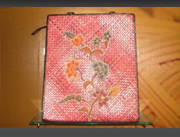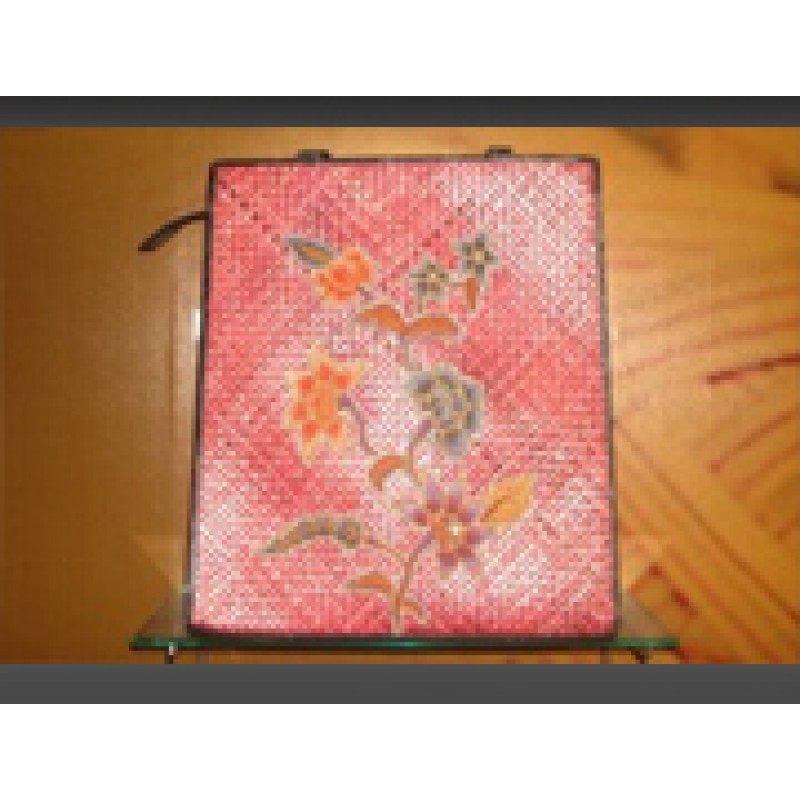 Keterangan artifak: Beg Jinjing diperbuat daripada anyaman pandan dan dihiasi dengan motif bunga pada bahagian hadapan beg.