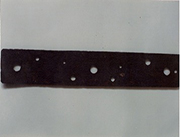Keterangan artifak: Lubang-lubang pada besi ini bertindak sebagai acuan untuk membuat pasak.