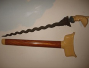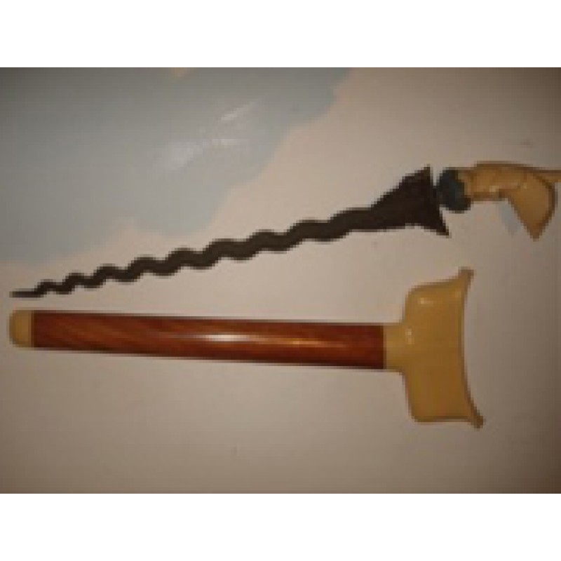 Keterangan artifak: Hulu jawa demam daripada gading. Batang sarung kayu kemuning, sampir dan butut daripada gading.