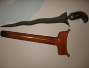 Keterangan artifak: Ganja sidi senu, hulu kayu hitam motif pipit teleng, sarung diperbuat daripada kayu kemuning