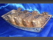 Keterangan artifak : Tepak sirih ini diperbuat daripada perak dan berfungsi sebagai barang perhiasan di dalam rumah.
