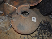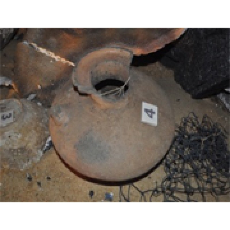 Keterangan artifak: Dijumpai di laut Terengganu Chendering, tersangkut pada pukat nelayan jenis Sawankhalok.